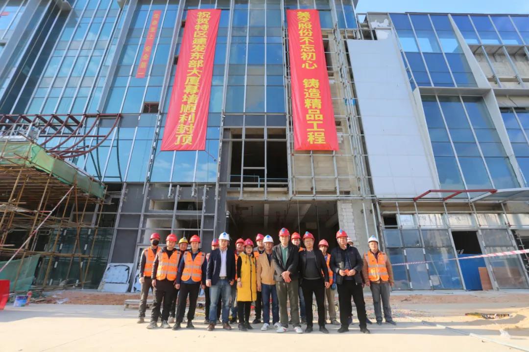 2021年1月16日,美芝股份承接的特區(qū)建發(fā)·東部大廈幕墻正式封頂,項目現場舉行了簡單而熱烈的封頂儀式。此次幕墻的順利封頂,標志著深圳市深汕特別合作區(qū)(以下簡:深汕特別合作區(qū))第一座集總部辦公和商業(yè)商務配套為一體的超高層綜合體建筑外立面形象工程完美收官,刷新了深汕特別合作區(qū)幕墻天際線,為合作區(qū)建設增光添彩。